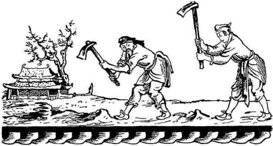 Чжу-цзы протянул к мечу руку и еле успел её отдёрнуть. Меч скользнул по руке, оставив глубокую царапину. Тогда юноша выхватил из-за пояса пучок разноцветных шелковинок и бросил перед собой. Меч запутался в тонких нитях, и на одно мгновенье взмах его замедлился. Этого было достаточно для ловкого юноши, — он крепко ухватился за рукоять, и меч покорно опустился.