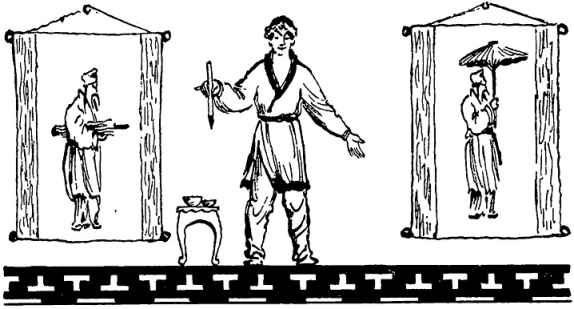 И вдруг мальчик перестал плакать. Мать подняла голову и увидела, что рядом с её сыном сидит слепой юноша и что-то ему рассказывает. Женщина прислушалась — это была удивительная история о том, как маленькая жаба напугала свирепого тигра и перехитрила хитрую обезьяну. Рассказывая, юноша проводил пальцами по натянутым на изогнутый бамбук волоскам, и они рычали, как тигр, квакали, как жаба, и пищали, как обезьяна. Больной мальчик весело смеялся. Улыбалась и мать. Юноша кончил одну историю и начал другую…