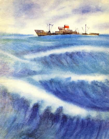 Конечно, тут нужны не только быстрота и сноровка, но и порядок. Чтоб никто друг другу не мешал. …Вот, окатив скалу, схлынула очередная волна. «И-а! И-а!..» — Приготовиться!.. Недаром этих пингвинов называют скалолазами. Цепляясь крылышками за еле приметные выступы и трещинки, они словно выплывали на вершину скалы. Ни один пингвин не сорвался, карабкаясь по каменистой крутизне, и нигде не промедлил ни секунды. Когда опять загремел прибой, все полторы сотни птиц уже поднялись на обрыв. Вразвалочку, гуськом, шли они по той же тропинке. Прежнего построения вожак сейчас не требовал. Он и сам едва плёлся сзади. Устал. Я поймал четырёх молодых пингвинов. Возни с ними было много. На корабле они ничего, кроме рыбы, не хотели есть. Наш доктор сказал: — Не морить же птиц голодом! Организуем бригаду рыболовов. Никаких рыболовных снастей под руками не оказалось. Сами смастерили удочки, крючки. По вечерам, как только на флотилии заканчивалась работа, несколько моряков бежали на корму рыбачить. Пингвины вроде бы небольшие, сантиметров по семьдесят росту, а каждый в день съедал не меньше килограмма рыбы. Потом, возвращаясь из Антарктики, мы проходили через тропики. Пингвины к жаре непривычны — страдают. Найдут где-нибудь тень и сидят, нахохлившись, как неживые. Мы устроили для них на палубе бассейн. Затенили его брезентом, но вода всё равно быстро нагревалась. Наш доктор тут как тут: — Охлаждать воду нужно! Пусть механики что-нибудь придумают.