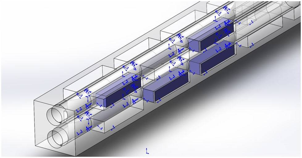 3) Нет смысла стремиться к достижению в трубе полного вакуума, это невыгодно, ведёт к экспоненциальному росту затрат. Даже при высоком разряжении внутри трубы, на высокой скорости транспортное средство всё равно столкнётся с набегающими воздушными массами. Для надёжной стабилизации поезда, внутри трубы прокладываются два круглых рельса (один сверху, другой снизу). При движении на малых скоростях поезд едет по ним на колёсах, а с повышением скорости, в зазор между колёсами, линейными направляющими и рельсом подаётся воздух под давлением и дальше поезд едет на воздушных подшипниках. Для перехода на другой путь, перед стрелкой колёсные узлы наклоняются в сторону поворота, и вагон переходит на соседний путь. Наклон колёс в сторону противоположную повороту, обеспечивает движение по основному пути. В движение состав приводит линейный электрический, или другой двигатель, с возможностью рекуперации энергии при торможении