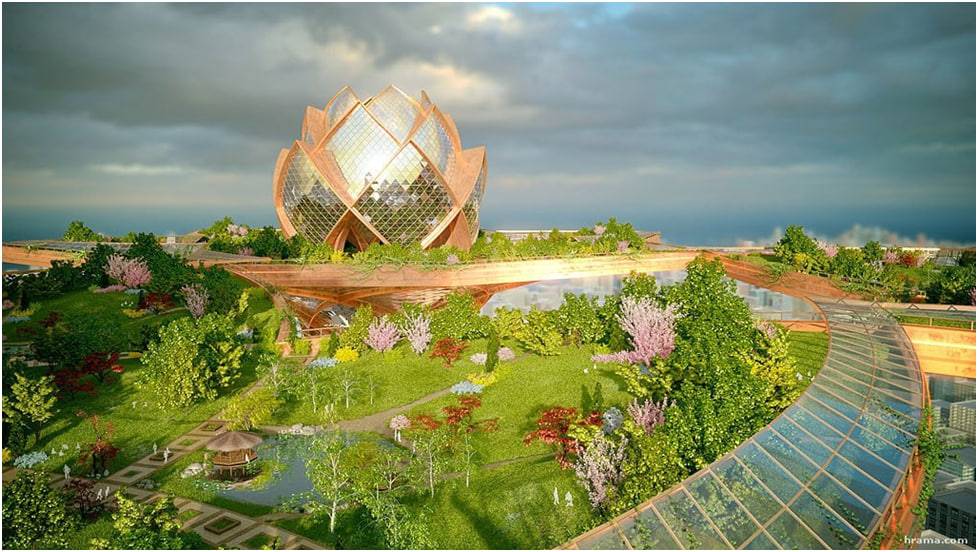– Центр духовного развития – прокомментировал Антон. – Я-то думал, что у вас всё только под землёй – удивился Фёдор. – Это заблуждение. Задача не спрятать всё под землю, а так сформировать общую композицию, чтобы объем биосферы был максимальным. Ограничением является необходимость постройки жилых боксов герметичными, чтобы можно было создавать внутри их более благоприятные для организма человека условия, ну и увязать всё это с транспортной и другими системами. А для наружных сооружений определяющим является не затенять другим солнечный свет. Кстати, ещё в Древнем Риме появилась мода на зимние сады. Известно, что действовал особый закон, который запрещал возводить жилые постройки так, если бы они закрывали солнечный свет, что падал в окна соседних домов. В жилых комнатах устанавливались широкие подоконники для того, чтобы можно было иметь небольшой собственный садик. В богатых же домах была возможность обзавестись садом с колоннадой во дворе. Там выращивали фиалки, лилии, розы. Цветы, как правило, ввозились из Египта, Греции и Карфагена. Стены домов украшали различными фресками. Мы стараемся использовать весь накопленный предшественниками успешнейший опыт сосуществования с природой. Часто, мы располагаем сооружения, не связанные с производством, или переработкой/распределением над землёй, получаются эдакие висячие сады – это право очень красиво! С этими словами, Антон продемонстрировал несколько голограмм с разными утопающими в зелени сооружениями.