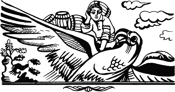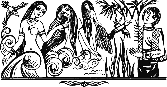 Идти братьям в три стороны. — Я пойду вот по этой дороге, — сказал старший и на широкую показывает, откуда назад можно вернуться. Средний намерился по средней дороге идти — неизвестно, вернется назад или нет. А младшему досталось идти по узкой дороге, откуда обратного пути нет. — Постойте, братья, — говорит младший, — коли так, давайте поднимем этот камень, завернем наши перстни в платки и положим под него. Кто раньше вернется, поднимет камень и возьмет свой перстень. Кто позже приедет, будет знать, кто уже проходил, и тоже возьмет свой перстень. Сняли братья перстни, завернули в носовые платки, положили под камень и отправились в три стороны. Старший брат достиг какого-то города, поступил на службу в винный магазин и начал торговлю. Средний устроился в харчевню официантом. Остался младший. Попал он в дремучий лес. Видит — вдали горит свет. Пошел на свет и набрел на дворец. В нем женщина-великан сидит и вместо веретена крутит длинное бревно с тяжелым камнем на конце и сучит пряжу толщиной в руку. — Здравствуй, матушка, — сказал царевич и кинулся на шею старухе, обнимает ее, целует. — Добро пожаловать, исаноглу[1], — отвечает старуха. — Хитрый ты: не скажи ты «матушка», я б тебя вместе со жвачкой разжевала, — сказала Женщина-великан, а сама вправду жвачку жует. — Кто ты, куда идешь? Как до наших мест дошел? Сюда птица на своих крыльях не долетала, змея на своем брюхе не доползала. — Я, матушка, иду за алтынсачским соловьем, может, слыхала? — спрашивает царевич. — Э-э, бала[2], у меня десять сыновей. Они весь мир обходят, небо и землю обшаривают, но никогда об алтынсачском соловье не говорили, — отвечает женщина-великан. — Сейчас придут домой, узнаем. Вдруг в лесу поднялся невероятный шум, подул ветер, деревья вырывает с корнями, ломает, как хворостинки. — Матушка, что это? — спрашивает царевич. — Это сыновья мои возвращаются с прогулки, расчищают себе путь, — отвечает старуха. Ударила она царевича ладонью, превратила в гребешок и сунула себе в волосы. Пришли сыновья. — Мама, человеческим духом пахнет. — Гм, сами весь свет переворачиваете, что попадется в рот суете, от вас, видно, и пахнет. — Нет, мама, в доме исаноглу, показывай, — настаивают сыновья. — Если парень, назовем его нашим братом, если девушка — будет нам сестрой. Показывай. Ударила мать ладонью по гребешку и снова превратила царевича в парня. — О, нас стало одиннадцать братьев! — обрадовались великаны. — Да не убавится вашего покровительства надо мной, старшие братья, — говорит царевич. — Но я — путник, должен идти исполнить свое желание. — А какое у тебя желание? — Иду за алтынсачским соловьем, чтобы наше царство расцвело. Братья в недоумении переглянулись: до сих пор не слыхали они об этом соловье. Тогда мать говорит одному из сыновей: — Веди брата, покажи дом моей сестры, а сам возвращайся. Привел великан царевича к границе и говорит: — Вот здесь дом нашей тети. Может, она знает о твоем соловье. Показал, а сам вернулся назад. Вошел парень в дом, видит: здесь тоже сидит женщина-великан. У нее двадцать сыновей, но не буду наводить скуку повторением: ни один из них ничего не знал о соловье. — Тогда отведи молодца к старшей моей сестре, — сказала мать одному из сыновей. — Но смотри, если хоть один волосок упадет с его головы, снесу тебе башку. Приведи к границе, а дальше он сам пойдет. Повел великан ца