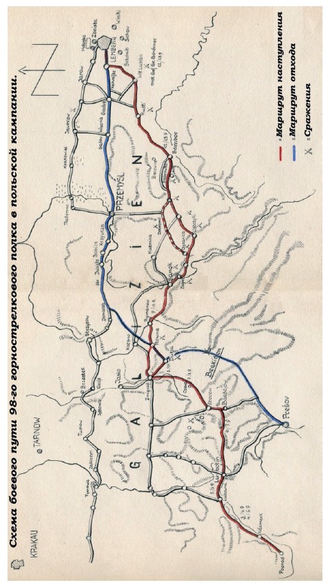 Третий батальон девяносто восьмого горнострелкового полка был временно расквартирован в Самборе, а тем временем моторизированная группа преследовала противника. Моему взводу стрелков-мотоциклистов было приказано направляться в сторону Лемберга. Дорога была лучше, чем та, по которой мы двигались раньше. Группе Шернер удалось захватить противника врасплох по всему фронту наступления. Очень быстро разбив польские войска в нескольких тяжелых боях, наш полковник привел нас к Лембергу.