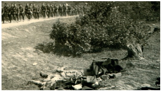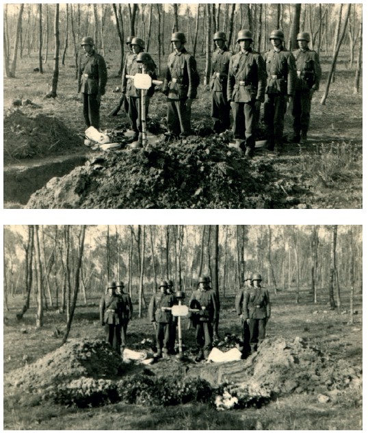 Оберлейтенант Энгельберт Майр был похоронен на лугу, перед деревней Ровне, на месте ожесточенных боев с противником, в присутствии командира и других офицеров полка. Он был моим земляком и одноклассником из Партенкирхена. Гибель единственного сына стала для его родителей невосполнимой утратой. На фото видны высоты, оборонявшиеся противником, которые двенадцатая рота взяла во время атаки