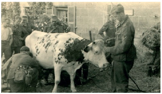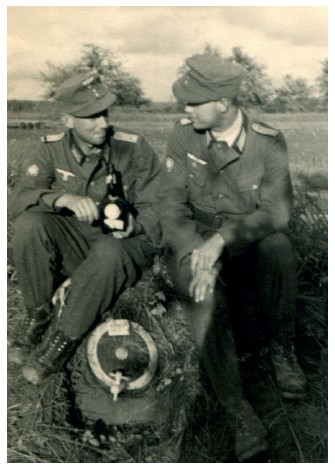 (прим.: переведенный текст донесения приводится в приложении) Командир батальона со своим адъютантом никогда не покидали безопасный командный пункт батальона, а дежурный офицер был старым военным, ветераном Первой мировой войны, и возрастные проблемы ограничивали его работоспособность, поэтому поступающие приказы любой важности должны были решаться мной с моим взводом стрелков-мотоциклистов. Во время этой семидневной обороны мы получали горячий суп, хлеб и свежие фрукты.