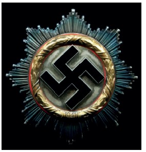 Немецкий Крест в золоте был учережден 28 cентября 1941 г. Орденом награждались солдаты и офицеры, которые ранее уже были награждены Железным Крестом II и I классов, «неоднократно проявившие исключительную храбрость в бою или неоднократно продемонстрировавшие превосходное руководство над своими подчиненными непосредственно на поле боя». Общее количество награжденных – около 25 тысяч человек. Орден представлял собой восьмиконечную звезду, в центр которой был помешен белый эмалированный круг со свастикой, украшенный золотым лавровым венком, внизу которого была помещена дата 1941.