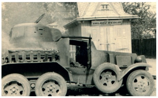 Уничтоженный советский броневик в деревне Винники.