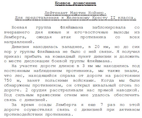 Наградной документ лейтенанта Мартина Нойнера из 12-й роты