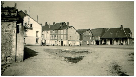 Воронка на рыночной площади городка Бре на Марне после налета немецкого пикирующего бомбардировщика