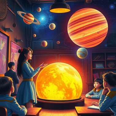 Когда Тая вошла в класс, ее встретила любопытная тишина. Ученики сидели за деревянными столами, с интересом разглядывая новую учительницу. У доски стояла большая карта Солнечной системы, а рядом на подставке покоился ее старый знакомый — глобус.