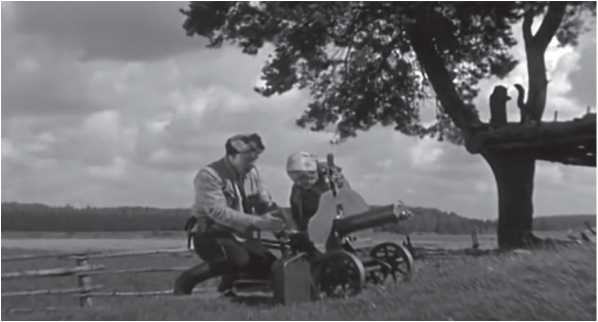 Сцена с картошкой была одной из самых любимых зрителями, и тем более любопытно, что эта сцена оказалась случайной находкой. Бабочкин вспоминает: «Некоторые сцены были сняты в одну смену, без остановок и повторений. Например, сцена с картошкой. Она была найдена случайно. Летом 1933 года мы сидели в избе у колхозника в деревне Марьино Городище и ждали солнца. Это было наше обычное занятие в то лето. Изба мирного колхозника превратилась в красный партизанский штаб. На столе — гранаты, пулеметные ленты; в углу свалены винтовки. За окном пыхтит допотопный автомобиль. Мы — чапаевцы. Хозяйка принесла угощение — вареную картошку. Рассыпалась по столу картошка, и одна, уродливая, с наростом выкатилась вперед. Кто-то сказал: «Идет отряд походным порядком. Впереди командир на лихом коне…» Хозяйка поставила на стол огурцы. «показался противник» — сказал другой. Запомнили этот случай и потом в Ленинграде быстро и весело сняли эту сцену, несколько изменив первоначальную наметку сценария». История советского киноискусства звукового периода. Часть I. С. 86. (обратно)395