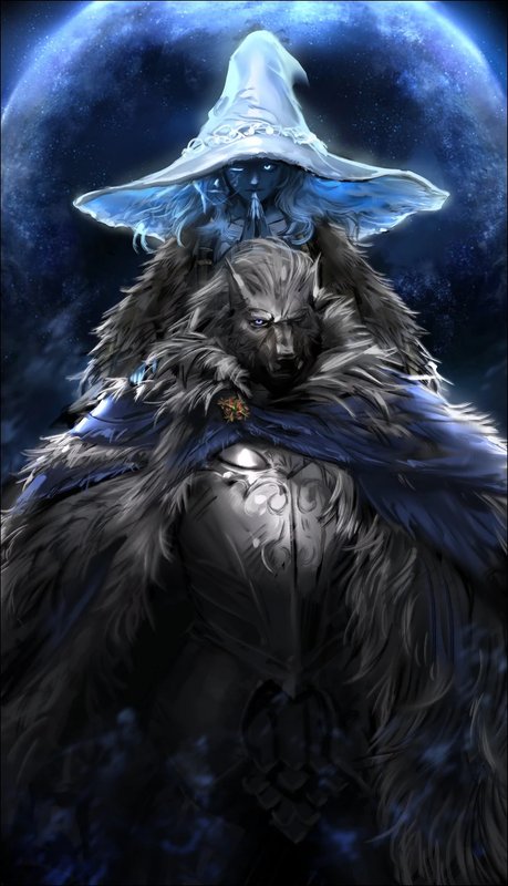 Маликет Чёрный Клинок. Хранитель руны Предначертанной Смерти, некогда преданный той, кому он служил. Той, кого мог назвать сестрой, что впоследствии заставила его влачить существование хуже смерти. Верный своему долгу, он ненавидел его. Каждую секунду испытывал невыносимый голод, не имея возможности его утолить. Почему Марика разбила Кольцо? Почему не сказала ему? Почему не попросила помощи, мучаясь от боли утраты? Мучилась ли она вообще, или же это был просто очередной план, что был обречён на провал с самого начала? Маликет ненавидел королеву. Но, несмотря ни на что, наблюдая за Междуземьем сквозь призму проекции, продолжал исполнять свой долг, скрывшись в Фарум-Азуле. В ожидании очередного глупца, что попытается украсть у него Смерть. — Погасшая душа… Маликет ожидал, что увидит странного Погасшего. Даже через проекцию мог ощутить влияние Неземного. Впрочем, одних только пространственно-временных перекатов было достаточно для… предварительных выводов. Названный брат Богини не хотел сражаться против Константина. Тот смог подарить ему временное облегчение, утолив голод. Он не чувствовал от до ужаса похожего на королеву существа агрессии или алчности. У Чёрного Клинка была призрачная надежда на то, что Погасший не станет приходить к нему. Оставит идею присвоить себе то, что ему не принадлежало. И всё же… Кажется, он вновь ошибся. — Может, решим уже всё без сражения? Неожиданный вопрос мужчины заставил скрывавшегося под тряпьем огромного волка застыть. Оказавшись в храме Фарум-Азулы, он должен был пройти через многих слуг. За спиной Погасшей души должно быть немало трупов, и всё же… Он предлагает ему всё решить без сражения? Что за глупость? — Зачем… зачем тебе понадобилась предначертанная Смерть? Костя пожал плечами. — Нужно же как-то восстанавливать Кольцо. Не волнуйся, я постараюсь аккуратно его достать, мне лишние катсцены с разрушениями не нужны. Все руны вернуть было невозможно. Когда-то осколков было намного больше, но большая часть была утеряна. Практика показала, что, выполняя некоторые условия, можно было породить новые руны, но компенсировать руну, отвечающую за Смерть в мире, было далеко не так просто. Беззаботный ответ Константина привёл Маликета в ярость. Ярость зверя, посланного Великой Волей, чтобы он сторожил Золотой Порядок. Наглый Погасший, несущий в себе силу чужого Внешнего Бога, возомнивший самого себя Богом, уже считал себя полноправным королём. Тем, кто собирался строить свой порядок, не интересуясь ничьим мнением. — Кем ты себя возомнил, наглый Погасший?! — прорычал волк. Костя скептично приподнял бровь, понимая, что с его стороны было глупо надеяться на дипломатичный исход событий. По крайней мере, он попытался. — Очередной бомж, дорвавшийся до силы. В этом смысл соулслайков. Маликет вновь застыл, удивлённо вытаращившись на невозмутимого полуголого мужчину. На этом разговор окончился. Или, правильнее сказать, разговор перешёл в более конструктивное русло. Маликет, громогласно зарычав, кинулся на Погасшего. Земля затрещала под ногами, усталый зверь замахнулся когтями на мужчину, легко ушедшего от удара, но только для того, чтобы самому ударить покрывшимся золотистым сиянием кулаком. В конце концов, Реки крови были уничтожены, а другого оружия у него… Пока что не было, да и не то чтобы очень нужно было. Е