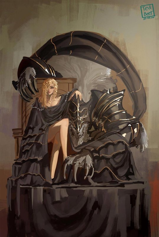 Лишь по прошествии небольшого количества времени, когда первоначальный шок спал, до девушек начало в полной мере доходить, в какой ситуации они оказались. Вопрос был даже не в том, что их Погасший всё это время скрывал столь пугающий навык владения мечом. Вопрос был в том, что он, воспользовавшись им и одолев сильнейшую мечницу Междуземья, перенёс их, явно заранее спланировав до победы маршрут, в тайное логово прошлого обладателя Кольца Элдена, великого Владыки драконов Пласидусакса, едва избежавшего смерти от предательства, добил несчастного не более, чем за несколько секунд, будто он не был некогда одним из страшнейших и самых могущественных существ в мире (и какая вообще разница, что он серьёзно ослаблен?!), а затем закончил то, что так и не смог закончить Микелла, искавший способ исцелить сестру на протяжении десятков, сотен лет. Погасшему могло благоволить хоть сто Внешних Богов, но даже так просто осмыслить масштаб… достижений мужчины было очень и очень сложно. Чем-то девушки напоминали типичных начинающих соулслайкеров, впервые узнавших, что у босса может быть вторая фаза. Костя, до этого не переходивший во вторую фазу, подарил вайфу те же самые ощущения, что чувствовал каждый новичок, с какой-то там попытки добравшийся до неожиданной трансформации. Мужчина, очевидно, о таких сравнениях не думал. В конце концов, первостепенно было закончить квест вайфу, переломав об колено самым грубым из возможных способов очередную плохую концовку. Было ли так важно то, что подумают остальные?.. Возможно, чуть более важно, чем он думал. Маления давно не чувствовала себя так хорошо. Она вообще не могла вспомнить, когда последний раз у неё на душе было так спокойно и легко. Всю жизнь мучаясь от невыносимой боли, сопротивляясь проклятию Внешнего Бога, желавшего обратить её в Богиню Гнили, она могла доверять лишь брату. Он был единственным, кто подошел достаточно близко к решению её проблемы. Тот, чьи сладкие речи всегда покоряли её сердце, заставляя склонить голову перед таким же больным, проклятым существом. Женщина сняла шлем, обратив свой взор на мёртвого дракона, толком и понять не успевшего, что его добило и почему. — Брат… влиял на мой разум, — едва слышно прошептала Маления. Теперь, когда её сознание прояснилось так, как никогда до этого, она начала вспоминать. Вспоминать, как легко поверила брату. С каким упоением слушала всё, что он говорил. Как не сомневалась в каждом его слове, считая даром свыше. Нежный, ласковый, совершенный. Единственная надежда. Это нисколько не отрицало его достижения и то, что лишь благодаря ему она всё ещё была собой. Но вместе с тем… Он, как и Внешний Бог, захотел отобрать, присвоить себе её душу, хотя в этом не было никакой необходимости. Уже за оказанную помощь она готова была склонить перед ним голову совершенно искренне. Но оказалось, что брат ей не доверял. Всё ещё считал, что намного надёжнее сделать её марионеткой. Это… разочаровывало. И ещё сильнее разочаровывало то, что в конечном итоге она его не дождалась. Вместо этого пришло совсем другое существо, силой навязав свои правила. Почему оно решило помочь? С какой целью? Маления прислушалась к ощущениям, чувствуя, как по её телу всё ещё скользило приятное тепло, помогающее ей быстрее восстановиться. Она ослабла. Серьёзно ослабла. Женщина понятия не имела, скол