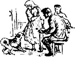 — Хороший пёс будет, — промолвит охотник и бережно положит щенка в гнездо матери, которая сейчас же начинает обнюхивать и лизать своего питомца, побывавшего в руках человека.