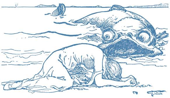 Кит и Трепетная. Иллюстрация Джона Д. Бэттена из книги Джозефа Джекобса «Кельтские сказки», 1892 г.
