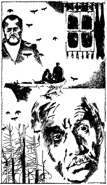 Шаваносов сделал шаг вперед и замер. Перед ним лежала плоская равнина, кое-где поросшая одинокими малорослыми лиственницами. Влево равнина уходила в бесконечность, где не росли деревья, где виднелись только пятна озер и еще дальше бледная над землей полоска тумана. Невдалеке над небольшим озером кружились странные небольшие птицы. — Господи, — прошептал Шаваносов. — Господи! Он как во сне скинул котомку, задрав бороду, вытянув по-слепому руки, осторожно направился к ним. Птицы взмыли, стали удаляться. Шаваносов замер. Но птицы, описав играющий полукруг, снова вернулись к озеру, чтобы продолжать над ним непонятный свой танец. В закатном солнце нестерпимо розовым отсвечивало их оперение. Шаваносов вошел в небольшую, поросшую кустарником ямку. Под ноги он не смотрел. — Осторожнее, черт вас возьми! — раздался крик. Точно этого и надо было, чтобы нарушить равновесие: взмыли птицы, и Шаваносов вдруг исчез, как будто его дернули за ноги. Незнакомец с винчестером в руках, стараясь точно ступать на следы Шаваносова, подошел к месту, где исчез священник. Один куст был вырван с корнем, вниз уходил мутный ослизлый лед. Грязные торфяные струйки текли по льду. — Шаваносов? — Незнакомец склонился над ямкой. Снизу донесся стон. Незнакомец неторопливо принялся разматывать с пояса тонкую веревку. — Птицы, — донеслось снизу. — Вы посмотрите: птицы не улетели? Незнакомец отбросил веревку. Лицо его стало жестким. — Шаваносов, может быть, сейчас вы кончите валять дурака? Вам не надоело морочить мне голову? — Это были они! Мы пришли… пришли. Вытащите меня. Я боюсь, что они улетят. Незнакомец сел на землю. Обхватил голову руками и вдруг оглушительно засмеялся. Он смеялся до слез. — Шаваносов, — указал он в ледяную глубину. — Вы все-таки обманули меня. Блаженный вы негодяй, Шаваносов. — Не кричите, простонал из глубины Шаваносов. — Вы их вспугнете. Это редчайшая, редчайшая… Незнакомец вскинул винчестер. Выстрелы загремели один за другим. — Редчайшая… всех перебью… Буду торговать перышками… сволочи… сволочи в перышках… и еще раз… Патроны кончились. Сухо щелкнул боек. Незнакомец с налитым кровью лицом стоял и смотрел, как птицы, привыкшие к грохоту арктических льдов, невозмутимо кружатся над озером. Он отложил ружье. И вдруг с бешеной энергией начал вырывать кустики полярной березки, сшибать каблуком кочки и швырять все это в яму, откуда доносился стон Шаваносова. — Что ты делаешь? — донеслось оттуда. Но незнакомец все кидал ветки, покуда не затих последний стон Шаваносова. Он остановился. Чаек не было. Была тундра и тишина. — Я не сторож брату моему, — вслух сказал он. Поднял винчестер, рюкзак и зашагал к полоске леса на горизонте. Из-за ветхой искривленной лиственницы, сросшись с ней цветом одежды, с расширенными от ужаса глазами наблюдал за происходящим мальчишка-эвенк. Он быстро сполз в русло высохшей речки. И здесь, скрытый от глаз незнакомца, бросился бежать прочь. Бежал и плакал мальчишка-эвенк в неловкой, с отцовского плеча, меховой одежде. Незнакомец остановился у небольшой кустарниковой гряды. Вынул из рюкзака палатку и расстелил ее. Взял котомку Шаваносова и вытряхнул содержимое на палатку. Выпали носки, дневник и чистая тетрадь. Несколько карандашей. Карманная Библия. — Не густо жил правдолюбец! — усмехнулся он и поднял дневник Шаваносова. — К