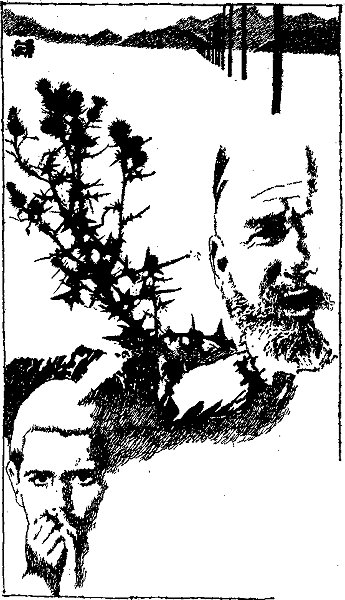 …В вечерний час, когда валилась на землю южная ночь и прохлада, хорошо было сидеть на лавочке у забора под могучим тутовым деревом и слушать замирающие хозяйственные стуки в деревне, обонять запах дыма и не думать совсем ни о чем. На круглом великаньем столе стояла керосиновая лампа. В желтом свете янтарно отблескивали графины с вином. За столом на странных высоких табуретах, вроде как в баре, сидели старики. Свет лампы снизу освещал лишь твердые подбородки в седой щетине и седые усы. Выше усов находились лица в полумраке. Когда Рощапкин вошел в сопровождении хозяина, один из стариков, сидевших спиной к двери, покачнулся на высоком табурете и начал медленно падать. Когда все мыслимые возможности равновесия уже были нарушены, старик вдруг гибко выпрямился и снова замер на табурете, недвижимый, как скала. — Он думает, что он на коне едет. Ха-ха! — сказал хозяин. В то же время громадная его ладонь ловко управляла рощапкинскими движениями: протолкнула мимо непомерного шкафа, стоявших на полу кувшинов и бутылок и последним толчком пододвинула к табуретке. Сейчас же из темноты вынырнула вторая громадная ладонь, и из недр ее появился стакан. На стакане обычного стекольного производства чья-то затейливая рука нарисовала красками сцену: очень крутые скалы и горы, а с гор идет усатый красавец с ружьем и несет на плече серну. На другой стороне стакана были нарисованы те самые цветы, которых нет ни в одном ботаническом атласе мира. Рощапкин присмотрелся к полутьме и увидел, что за столом сидят еще четыре старика. Они сидели в темноте, как нахохленные белоголовые коршуны, и приветливо улыбались. Не улыбался только тот, кто сидел, положив голову на руки. Но и он на мгновение поднял голову, сверкнул зубами и сказал: «Гаумарджос», протянул через стол темную руку. Рощапкин привстал, тогда и старик встал. Он оказался крохотного роста. На поясе висел громадный кинжал. — Это хевсур, — сказал хозяин. — Хевсур без кинжала не ходит. Старики повернули к хозяину коршуньи головы, и тот перевел речь по-грузински. Старики радостно заулыбались. Зубы их так и сверкали в темноте. Неожиданно хозяин постучал по стакану вилкой и заговорил страстным голосом. Старики положили руки на стол и молча слушали хозяина. Хозяин ораторствовал. Голос его раскатами проносился по комнате. Наконец Рощапкин услышал знакомое «гаумарджос», старики зажали в руках стаканы, но не пили, ибо хозяин заговорил по-русски: «Этот бокал мы пьем…» И наконец все сделали тот неуловимый по артистичности эллипсоидный жест стаканом: к груди, вбок, вверх и к усам. «Дурак, что не стал математиком», — отрешенно подумал Рощапкин, глядя на эллипс. Глухая ночь катилась за окном, когда его разыскал счастливый Кекец. Неумолимые старики все качались на стульях, но ни один из них так и не упал. При каждом тосте тамады-хозяина они строго выпрямлялись и делали свой жест стаканом, не забыв его выпить до дна. Хозяин же был, что говорится, ни в одном глазу. Иногда он забывал переводить тосты, но Рощапкину казалось, что он и так все понимает, ибо содержание тостов, как он догадался, шло от вифлеемских времен и оставалось неизменным. Менялась только их очередность. Где-то в третьем часу ночи Диамар Рощапкин вспомнил, что он историк, и провозгласил тост за великого грузина Георгия Саакадзе. При имени Саакадзе дремавшие стар