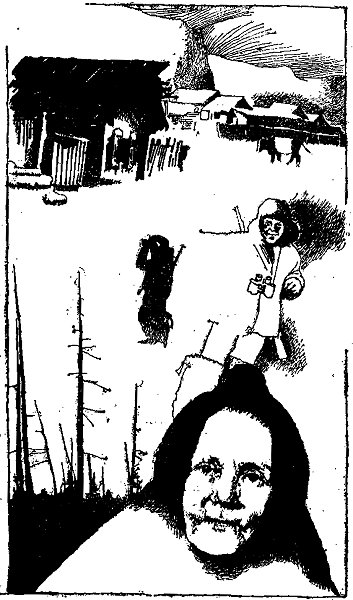 Я схватил воспаление легких, когда мы шли через низкие перевалы гор Дурынова. Стоял апрель — месяц солнечных холодов. Мы шли с северного побережья острова, оставив позади зеленый лед лагун, тишину и мертвый галечник морских кос. Горы Дурынова отделяли нас от базы на южном берегу. В этих местах понятие «горы» условно. Среди настоящих гор они считались бы просто холмами. Нас было пять человек. Пять мужчин в одинаковых кухлянках и меховых штанах, с распухшими от мороза и солнца лицами. На каждом подъеме все соскакивали с нарт и бежали рядом, крича и задыхаясь. Кричать было необходимо, чтобы собаки не останавливались. Я говорил «Давай!» на каждом выдохе, эскимосы — каюры грузовых нарт — коротко вскрикивали: «Хек!» Семен Иванович молчал. Он вел самую ответственную нарту с аппаратурой. За него ругался Ленька. Он погонял свою упряжку громко и непечатно. На третьем подъеме я понял, что сейчас умру от теплового удара. Одежду заполонил кипящий пот. На вершине я остановил собак и стянул через голову кухлянку и свитер. Упряжка понеслась вниз. Мгновенно превратившаяся в жесть ковбойка била меня по спине. Так повторялось раз пять, может быть, больше. Горы Дурынова занимают по широте сорок километров. В час ночи нарты, раскатываясь, неслись по взлетной полосе аэродрома. При аэродроме имелось шесть домиков. Крайний из них, приткнутый к самому берегу, второй месяц служил нам базой. За десять дней избушка промерзла насквозь. Мы поставили на пол примус и вскипятили чай. Эскимосы выпили по две кружки и по очереди подали нам руки. Они жили на охотничьем участке в шести километрах к югу от нас. Я лег на кровать в спальном мешке. Сквозь сон мне было слышно, как Семен Иванович шаркает по полу и гремит угольным ведром. Половину избушки занимала громадная печь, которую звали «Иван Грозный». Остыв, она запускалась долго и трудно. Я проснулся на другой день от звука собственного голоса. Наверное, говорил сам с собой. Голова казалась большой, как подушка, тело чужим. «Наверное, заболел», — подумал я и куда-то провалился. Семен Иванович тряс меня за плечо. Он держал в руках тонкий, как вязальная спица, приборный термометр. Я сунул термометр в спальный мешок. Столбик ртути застрял на тридцати девяти и восьмидесяти шести сотых. Появился Ленька. — Вот спирт, вот перец, — сказал он. — Ты, начальник, всю ночь погонял собачек. Я выпил дозу испытанной антипростудной смеси. Семен Иванович и Ленька серьезно наблюдали за этой процедурой. Распухшие лица их лоснились от вазелина. Они набросили поверх мешка свои меховые куртки и стали возиться с аппаратурой. День тянулся и тянулся без конца. Я то слушал разговоры ребят, то проваливался в короткие смутные обрывки снов. К вечеру стало совсем нехорошо. — Другая хворь, — убежденно заключил Семен Иванович. — Врач нужен. Он потрогал мой лоб. Тяжелая рука сорокалетнего человека щупала его, как щупают материю в магазинах. — Почем сантиметр? — пошутил я. — Иди к механикам, — сказал Семен Иванович Леньке. Я понял, что повезут к врачу. Мне это было безразлично. И больница и врач находились в другом островном поселке, в пятидесяти километрах от аэродрома. Туда добираться на собаках или вездеходом. Единственный на острове вездеход принадлежал аэродрому, на нем подвозили редкие грузы и пассажиров. Неизвестно было только, согласятся ли механики е