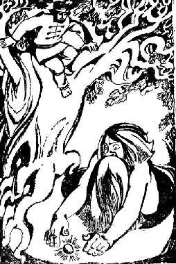 Ну, жених, который спасать-то приехал, залез на высокий-высокий дуб, чтобы его Идолище не достал. А Иван-царевич остался с Марфой-царевной на полу. И говорит: «Марфа-царевна, поищи у меня в голове. А ежели я усну и сине море вскулубатся, тогда будить меня будешь, только слезы не рони на меня, а то силы убавишь».