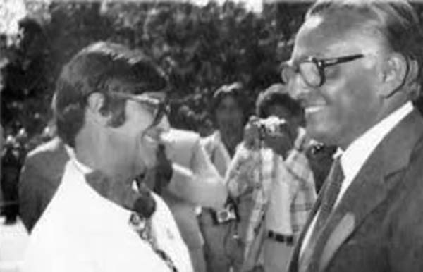 15 ноября 1980: Чико Хавьер рядом с мэром Helio Felipe Salomao Issa, после открытия памятной пластины на площади Чико Хавьера в Педро Леопольдо.