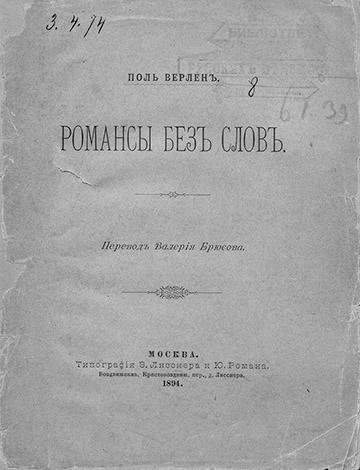 «Романсы без слов» в переводе Брюсова. 1894. Собрание В. Э. Молодякова
