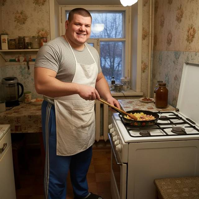 5 ноября 1988 года, г. Долгопрудный. Святослав Степанович ГригорьевЛазарь зря так сильно переживал за перевозку денег. Какова вероятность гоп стопа, если вызванное официантом такси забирает тебя прямо от ресторана и привозит непосредственно к родному подъезду в Долгопрудном? Пожалуй, даже меньшая, чем разбиться на самолете. Опасаться можно было только, если бы еврей сам навел бы кого-то на меня. Но в такое я не верил. Кто его знает как будет в будущем, но пока мы друг другу нужны и сто шестьдесят шесть косарей на фоне будущих совместных доходов просто сущие копейки. Выйдя из Волги и хлопнув дверью машины, я кивнул стоящим у подьезда местным парням, поднялся к себе на этаж и вошел в квартиру. В воздухе висел одуряющий запах жаренной картошки с колбасой. И вот вроде недавно поел, а опять рот слюнною непроизвольно наполнился. Пойдя на кухню по следу дурманящего запаха, конечно же обнаружил там Медвежонка. Ну а кого еще? Парень стоял возле плиты и помешивал картофан на сковородке, накинув на шею и повязав вокруг пояса бабушкин фартук, который в силу своих малых размеров на огромном теле приятеля смотрелся довольно комично: — Привет Слава! Минут десять и за стол, — повернулся ко мне и широко улыбнулся Миша.