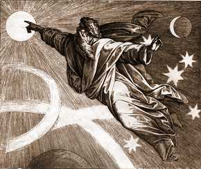 И сказал Бог: да будут светила на тверди небесной [для освещения земли и] для отделения дня от ночи, и для знамений, и времён, и дней, и годов; и да будут они светильниками на тверди небесной, чтобы светить на землю. И стало так. И создал Бог два светила великие: светило большее, для управления днём, и светило меньшее, для управления ночью, и звёзды; и поставил их Бог на тверди небесной, чтобы светить на землю, и управлять днём и ночью, и отделять свет от тьмы. И увидел Бог, что это хорошо. И был вечер, и было утро: день четвертый