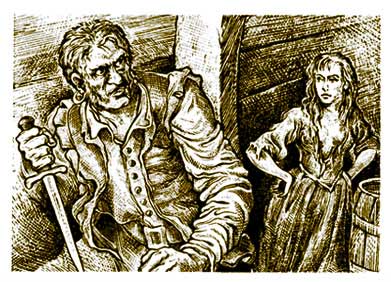 Педро пристал к берегам Эспаньолы на корабле, направлявшемся в Новую Испанию. Хотя у него не было ни родни, ни знакомых на острове, он решил присоединиться к населявшим его охотникам и живодерам. Обосновавшись в Сан-Хуан-де-Гоаве, Педро стал помогать кому-то из своих земляков, а потом и сам занялся торговлей; вскоре удача да к тому же еще упорство и выносливость помогли ему стать одним из самых богатых людей в округе. Медведь-толстосум, как все теперь называли его, никогда не играл, для этого он был слишком скуп. Лишь единственный раз сразился он в карты с одним из своих друзей и проиграл. На следующий день его друга нашли в поле с кинжалом в сердце. Все обвиняли Педро, но никто не сказал ему ни слова. В здешних краях принято было мстить только за собственные обиды. Педро не раз заводил знакомство с веселыми девицами, разделявшими жизнь охотников, но все они бежали от него, – уж слишком он был груб и скареден. Богатый живодер жил один, без семьи, в просторном удобном доме и держал множество слуг, которые помогали ему пасти стада, загонять в крааль скот, забивать быков и продавать кожи. В день, которым началось наше повествование, Педро долго стоял на площади, беспокойно посматривая по сторонам жадно сверкавшими глазами. Когда в торговых рядах появились Хулия с матерью, он пошел следом за ними и незаметно подслушал разговор Хулии с возлюбленным. Если б кто-нибудь взглянул в тот момент на живодера, то заметил бы, как он побледнел и скрипнул плотными белыми, словно браслет слоновой кости, зубами. Но в густой толпе рабов, охотников и торговцев, валом валившей на площадь, некому было обращать на это внимание. Хулия и ее мать продолжали свой путь, а Педро оставил их в покое и, грубо расталкивая всех встречных, направился в уже знакомую читателям таверну «У черного быка». В тот час таверна была почти пуста. Начало смеркаться, и весь народ потянулся на рыночную площадь. Живодер уселся за столик в укромном углу и властно крикнул, словно подзывая бессловесную скотину: – Исаак! Исаак! В тот же миг перед ним появился высокий, тощий, бледный старик, с большой шапкой в руках.
